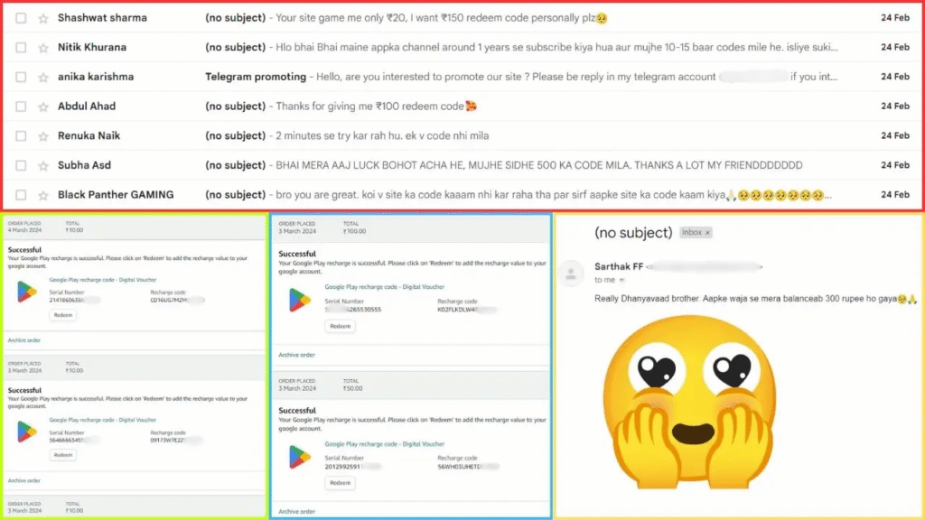 Again I am saying that I buy redeem codes daily from legitimate sources like Amazon, PhonePe, and Paytm. I then add the code to our website immediately after purchase.